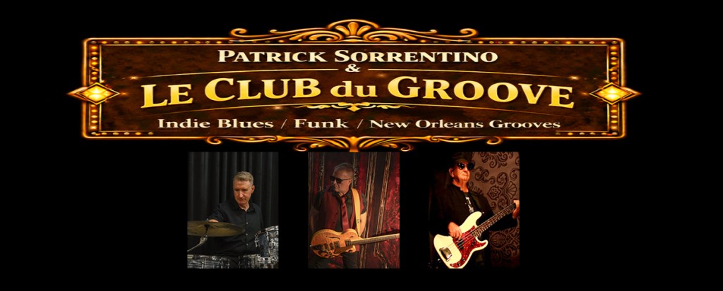 A couple of great mates have joined me on a brand-new three-piece adventure: Le Club du Groove. The band features Ronny Davidson on bass (The Hawkins Band) and Matt Carson on drums (The Hawkins Band / Palomino Deluxe and has worked with The Honey Badgers), alongside me, Patrick Sorrentino, on guitar and vocals.